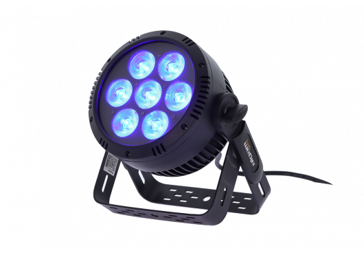 Des couleurs riches et une puissance impressionnante Le IP PAR 725 QUAD met à votre disposition 7 puissantes LED de 25W, capables de mélanger avec précision les couleurs RGBW disponibles et de les diffuser sur un angle de 20°. Idéal pour créer des ambiances en toute simplicité, ce projecteur à LED d'extérieur est parfait pour les installations fixes et les projections sur bâtiment, présentant une exposition importante aux intempéries et aux particules.