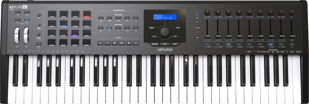 Clavier 61 touches Keylab MKII 61 BK, de la série de claviers Keylab MKII devenus célèbres pour leurs robustesses et rapidité d’utilisation, les Keylab ont envahi aussi bien les scènes que les studios. Fort de cette expérience, aujourd’hui Arturia propose la gamme MkII offrant de nouveaux modèles d’une qualité de fabrication exemplaire, disposant d’un toucher doté d’un aftertouch et une intégration avec les logiciels inégalée.