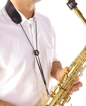 Cordon pour saxophone. Fixation type mousqueton à pompe en plastique.