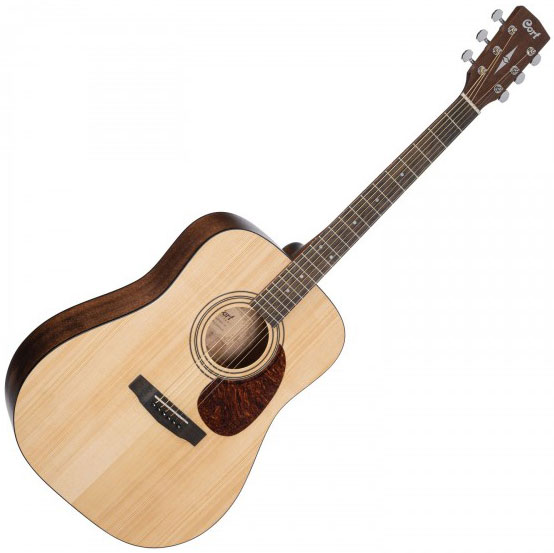 Le CORT Earth Pack Natural Open Pore est basé sur une Dreadnought proche de la populaire Earth70 pourvue d'une table en Epicéa Sitka massif, d'un trio fond/éclisses/manche en Acajou laminé et d'une touche en Ovangkol (avec des finitions plus sobres).