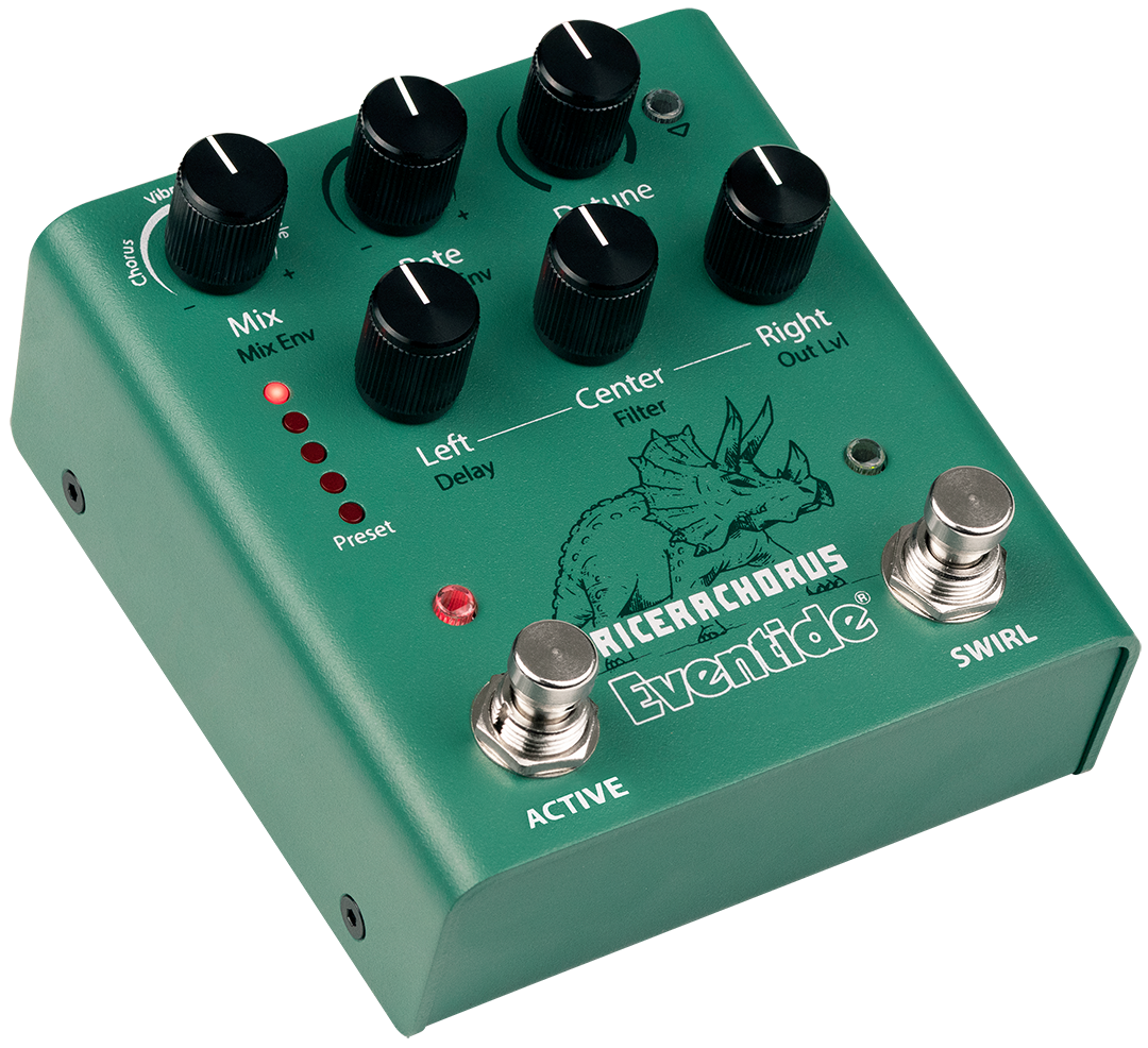 Inspiré par le classique Tri-Stereo Chorus et les stompbox des années 70 et début 80, la pédale d'effet compacte EVENTIDE TriceraChorus associe un circuit de type Bucket Brigade avec la légendaire technologie Eventide MicroPitch.
