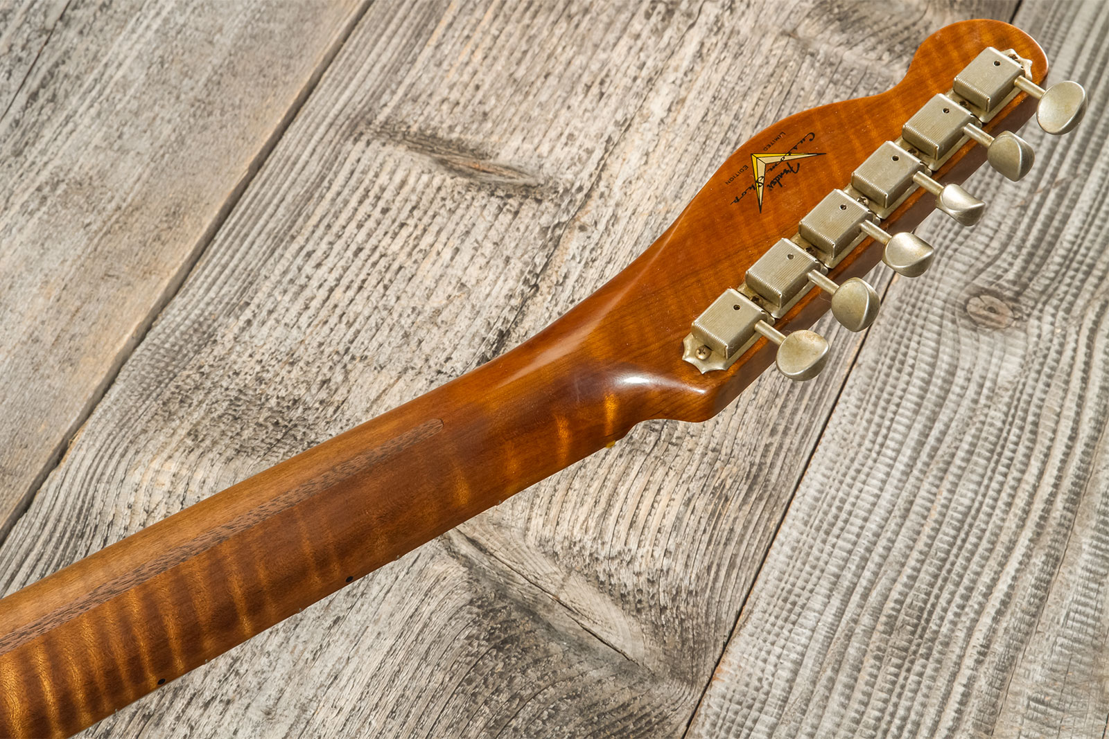 Guitare électrique solid body, corps en Frêne deux pièces "sort for lightweight", manche vissé et touche en Erable flammé AAA torréfié (profil 1954 U, frettes narrow-tall, radius 9.5"), micros bobinés main Custom Shop Hand-wound '55/56 Tele.