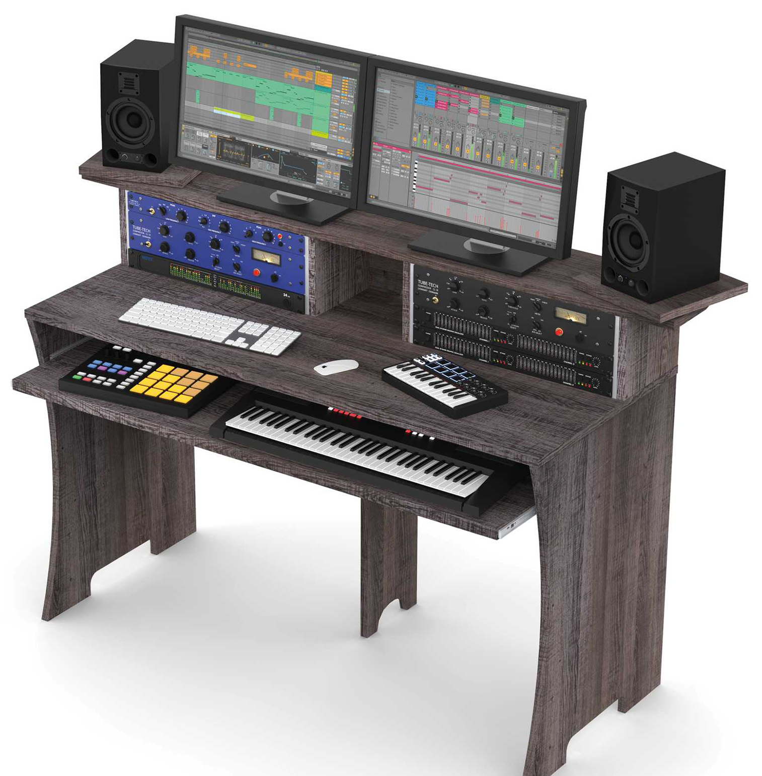 Les stations de travail Glorious pour home-studio ont été conçues pour offrir une ergonomie de travail optimisée. 2 baies 19" 4U et une surface horizontale accueillent l'équipement, tandis que le plan rétractable peut recevoir un clavier-maitre ou plusieurs machines. Ces stations de travail s'intégreront sans mal dans studio, home studio ou tout simplement à votre domicile avec les trois finitions disponibles.