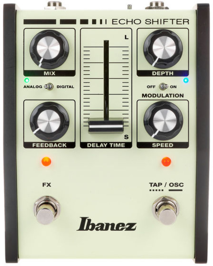 Equipée de deux circuits, un 100% analogique et un autre numérique, la pédale d'effet compacte IBANEZ ES3 Echo Shifter offre une grand variété de délais de type vintage (40 à 600ms) ou moderne (jusqu'à 1500ms).