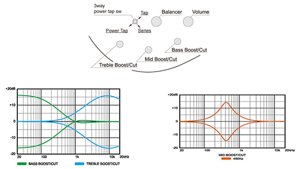 - Pré-amp Ibanez Custom Electronics 3-Band EQ, 3-Way Power Tap Switch