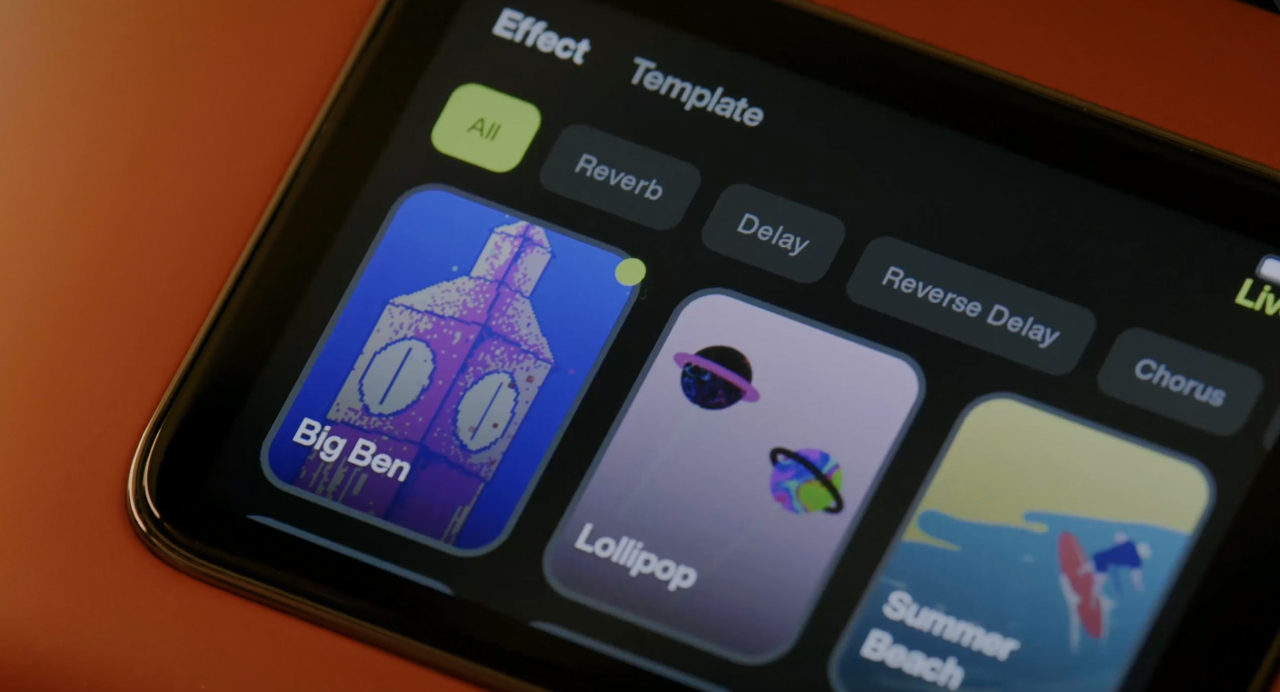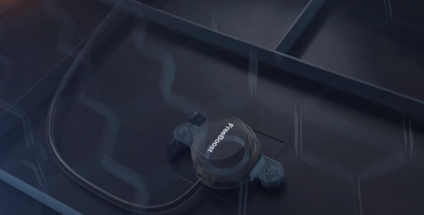 Concernant le système d'auto-amplification Freeboost : le fond de l'instrument agit comme un haut-parleur, et peut générer des effets de réverbération / délai / chorus contrôlables via des potentiomètres dédiés.