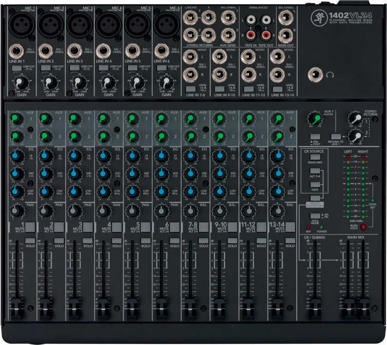 La table de mixage compacte 14 canaux MACKIE 1402-VLZ4 fait partie de la série VLZ4 qui intègre les fameux préamplis-micros ONYX.