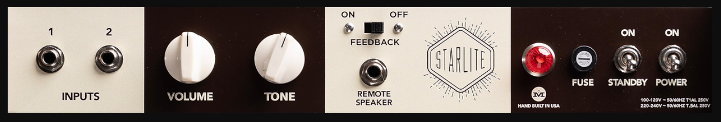 Le MAGNATONE Starlite est un ampli "Boutique" petite puissance (5 watts Class A, haut-parleur Magnatone Custom 8” Ceramic) fabriqué à la main aux USA à partir de composants haute performance.