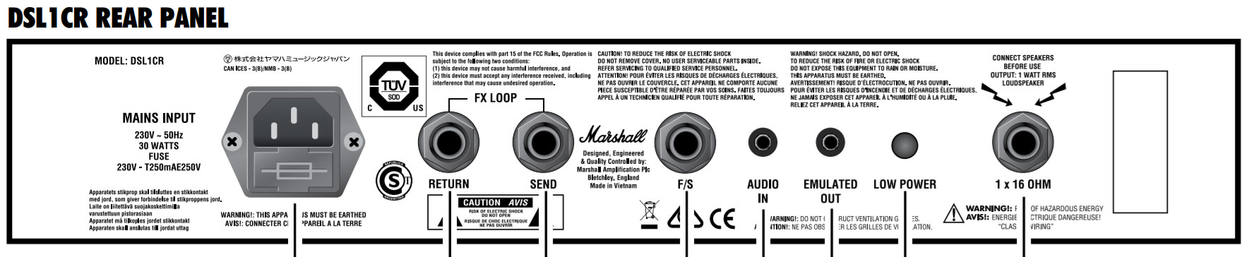 Avec la Série DSL, retrouvez des amplis avec l’identité Marshall combinée aux technologies les plus récentes. Pour un usage domestique, le combo guitare électrique tout lampes MARSHALL DSL1C (0,1 ou 1 watts, 1x8 Celestion, 2 canaux, reverb) est l’outil idéal. Il pourvoit des sonorités typiques Marshall et s’agrémente d'une connectique complète : sortie casque émulée, boucle d'effet, entrée mini-jack pour lecteur multimédia. Vous bénéficiez de tous les avantages des lampes (son chaleureux, grain naturel…) dans un petit format, qui rassurez-vous, peut déjà envoyer sévère !