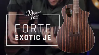 Proposée à un tarif attractif, la MICHAEL KELLY Forte Port Exotic Java Ebony est une guitare folk électro-acoustique de gabarit Concert qui sort des entiers battus.