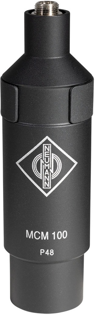 Système Neumann Miniature Clip Mic MCM sur une entrée micro XLR avec alimentation fantôme 48 V. Entrée : Mini jack 3,5 mm, sortie : XLR-3M.
