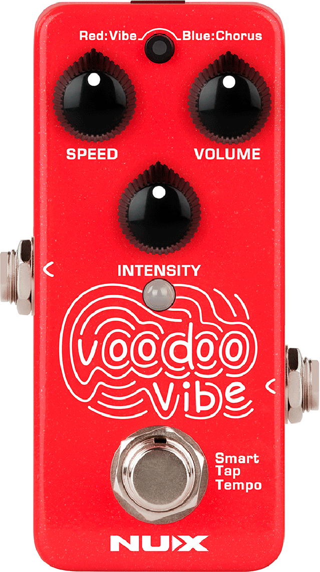 Le Voodoo Vibe est inspiré de la légendaire pédale Uni-Vibe simulant un haut-parleur rotatif provocant un vibrato du son par effet Doppler (rendu profond de modulation 3D). Les trois potentiomètres affinent le volume, la vitesse et l’intensité de l’effet. Deux modes d’effet distincts sont sélectionnables : Vibe et Chorus. Pour le mode Vibe/Vibrato, l’intensité modifie la profondeur de l’effet de balayage. En mode Chorus, l’intensité modifie le degré de modulation de la hauteur de l’effet (pitch). Le footswitch possède la fonction secondaire Smart Tap Tempo permettant de définir au pied la vitesse de l’effet (après 2 pressions pour activer ce mode). Restez appuyé sur le footswitch et la pédale va changer de mode d’effet (vibe ou chorus), et ce sans variation de volume (contrairement à de nombreuses pédales). Très compact mais plein de possibilités avec ses options modernes, le Voodoo Vibe est un concentré polyvalent de vibrato/chorus inspirant !