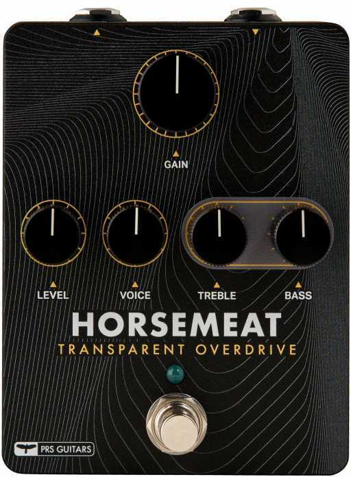 L'overdrive transparent PRS Horsemeat est un circuit conçu de A à Z pour améliorer le son de la guitare sans la colorer. Grâce à des diodes au germanium, le Horsemeat offre un son profond sans être nasal ou trop aigu, avec une grande richesse harmonique en amplifiant les fréquences basses et aigues, tout en offrant une dynamique accrue. Selon la configuration, le Horsemeat peut être utilisé comme un boost propre, directement comme un overdrive, ou même améliorer la distorsion d'un ampli en resserrant légèrement la section préampli de l'ampli. En substance, et selon les mots de Paul Reed Smith, le Horsemeat sonne comme un bon ampli.