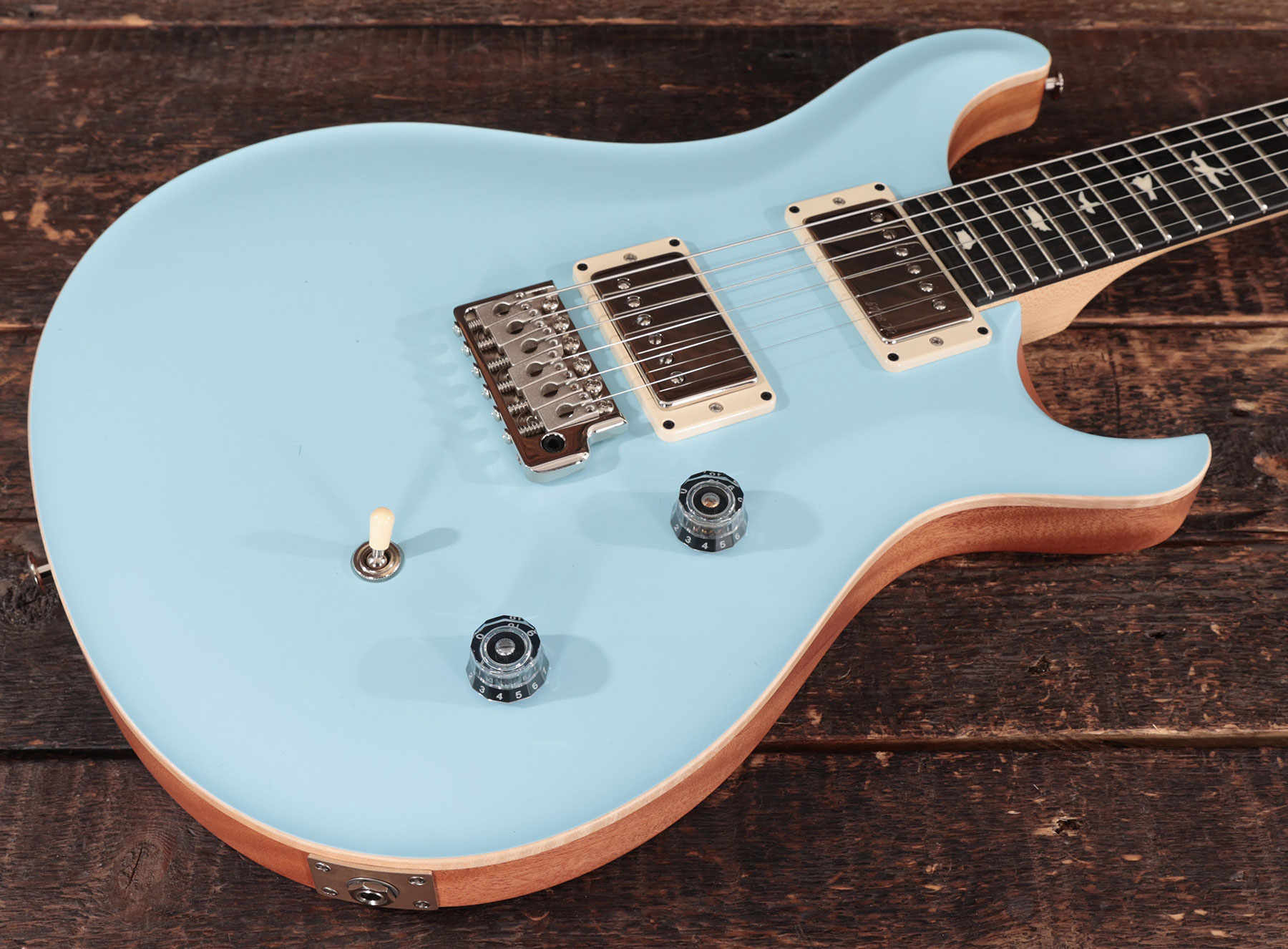 La guitare électrique solidbody PRS USA Bolt-On Limited Edition CE 24 Nitro Satin (Powder Blue) offre une vaste sélection de magnifiques sonorités évoquant au gré des positions du sélecteur une Fender© ou une Gibson© du meilleur cru.