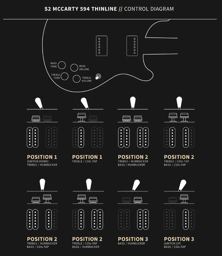 Produite USA la guitare électrique solid body PRS S2 McCarty 594 Thinline (Vintage Cherry) est un instrument polyvalent d'inspiration vintage qui met à votre disposition une vaste sélection de sonorités simple ou double bobinage, chaleureuses et expressives.