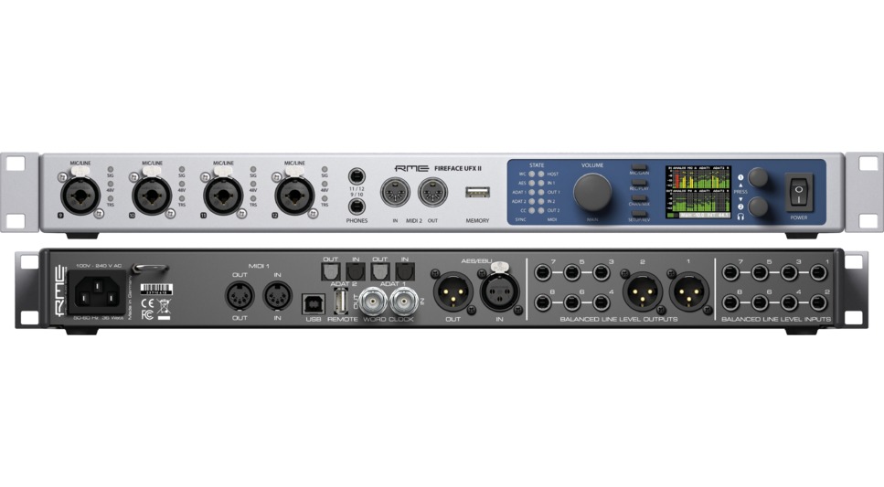 La Fireface UFX II de RME est une interface audio USB 30 canaux, avec contrôle de monitoring, effets DSP, circuit analogique haut de gamme, et convertisseurs de dernière génération.