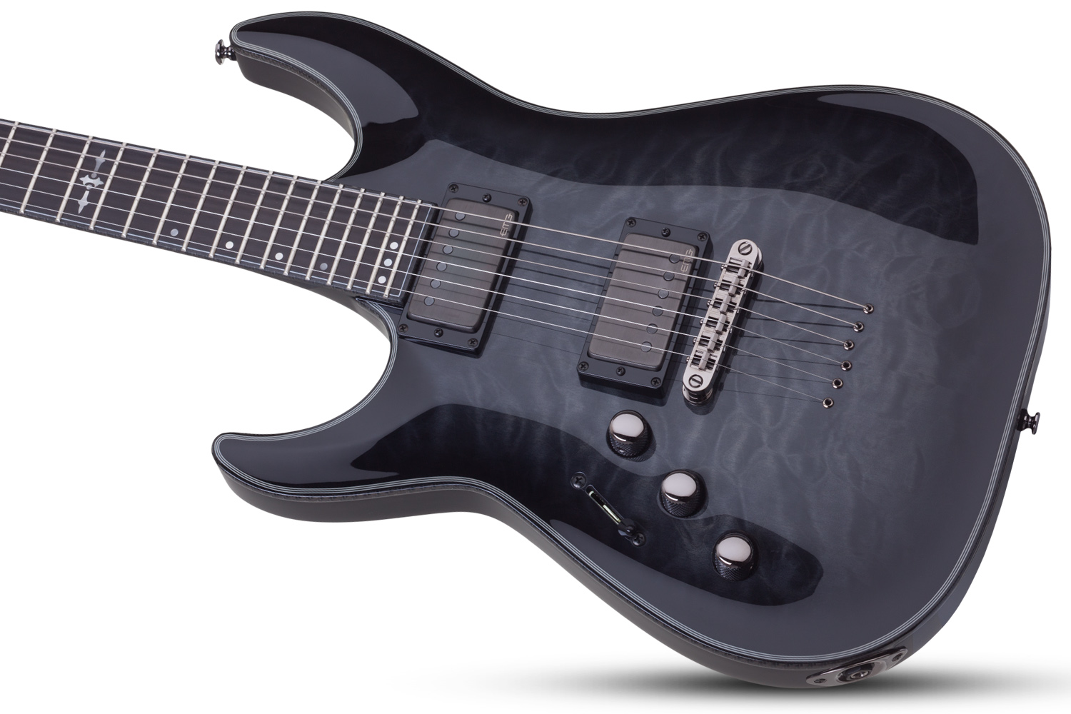 25,5”, touche Ebène), un set de micros actifs EMG et un chevalet fixe la guitare électrique SCHECTER Hellraiser Hybrid C-1 LH (Trans Black Burst) est une solidbody pour gaucher de référence pour les guitaristes Metal.