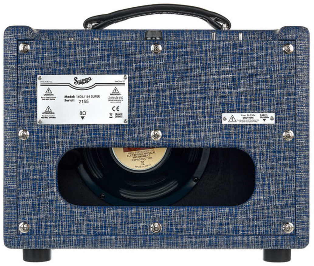 Minimaliste au possible, le SUPRO '64 Super (1606J) est un combo tout lampes Class-A de 5-watts, équipé d'un haut-parleur 8" (Jensen C8R depuis 2021) qui reproduit à la perfection le grain mythique des amplificateurs Supro du début des années 1960.