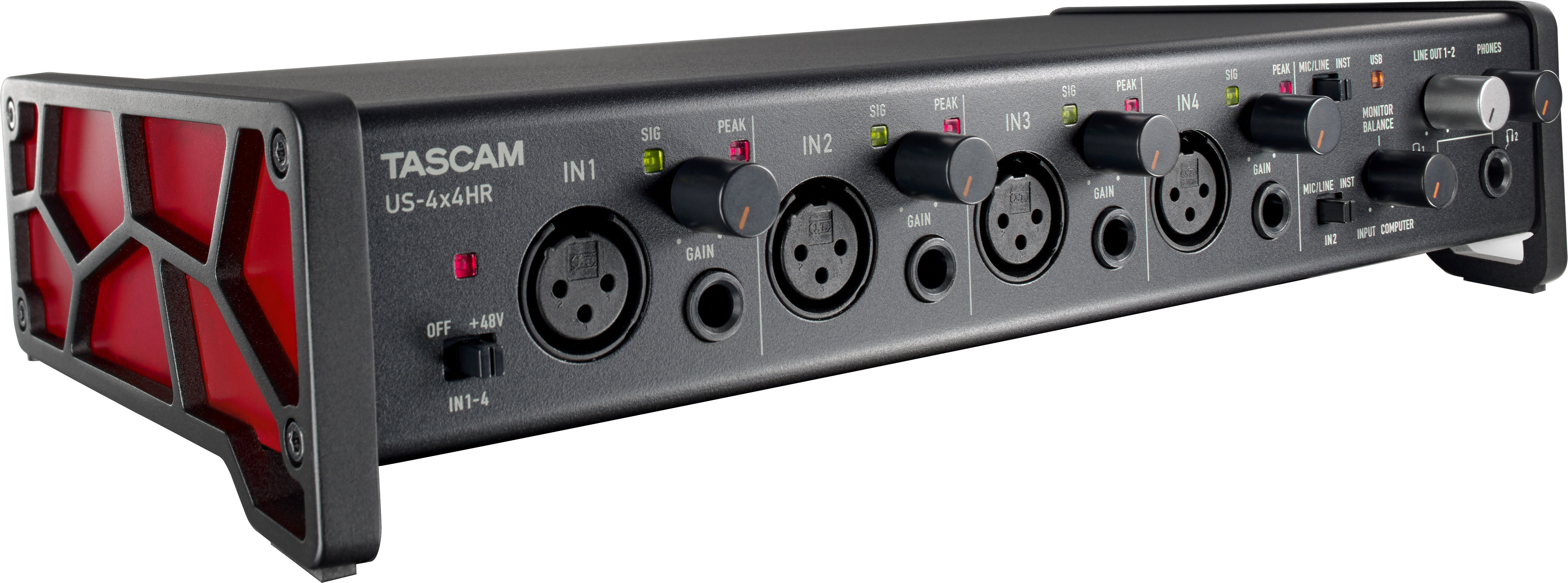 Avec ses 4 canaux d’entrée et de sortie, l’US-4x4HR fait partie de la Série US-HR d’interfaces audio USB haute résolution Tascam. C’est une version améliorée du célèbre modèle US-4x4. Elle propose quatre entrées micro/ligne, dont deux également utilisables pour entrée directe d’une guitare ou basse électrique, quatre sorties ligne symétriques, deux prises casque et une entrée/sortie MIDI pour votre ordinateur sous macOS ou Windows ou votre iPhone ou iPad*. Cette interface est idéale pour l’enregistrement multipiste de deux instruments et deux chanteurs, par exemple, ou pour la production multimédia exigeant une utilisation simple et un son de qualité studio. De plus, la fonction Loopback intégrée et la compatibilité avec OBS Studio (ex-Open Broadcaster Software) en font un excellent choix pour la création de podcasts et le streaming en direct.