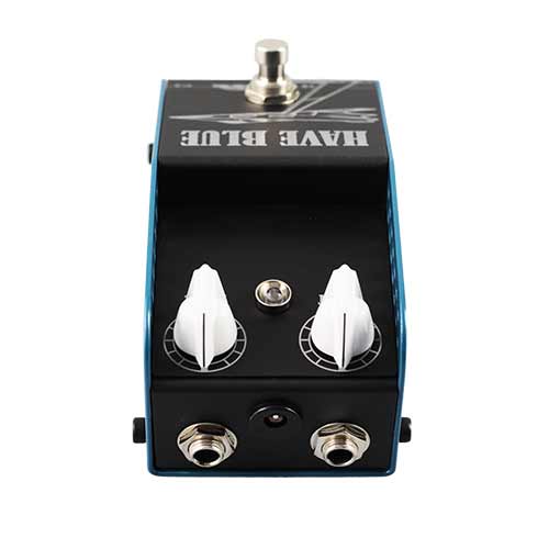 Son transformateur custom permet de placer l'Have Blue en amont ou en aval de votre chainage de pédales.