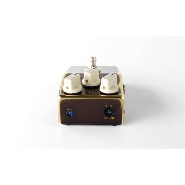 - Level, Tone, Fuzz, Bias Trimmer (pour adapter la pédale au type de micros)